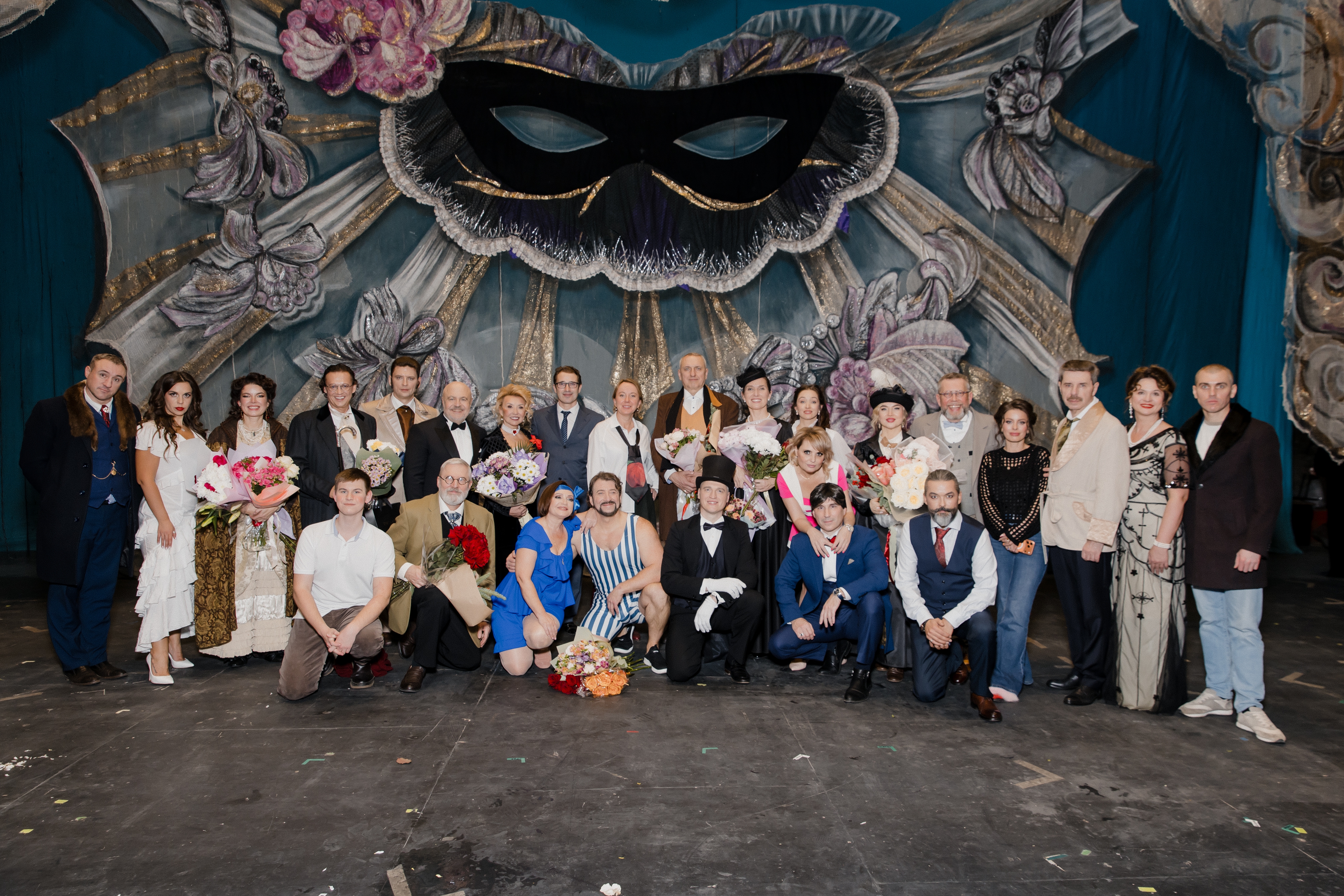 В этом году 24 делоросса перевоплощались в героев рассказов Аркадия Аверченко. Постановка «Маски и лица любви» включала в себя несколько юмористических рассказов знаменитого издателя журнала «Сатирикон», в том числе «Ниночка», «Сердечные дела Филимона Бузыкина», «Знаток женского сердца», «Неизлечимые», а также пьес – «Новогодняя пасха», «Женская доля» и др. Актеры погрузили зал в атмосферу начала 20-ого века и предложили оценить колкий юмор писателя на извечную тему взаимоотношений мужчин и женщин.