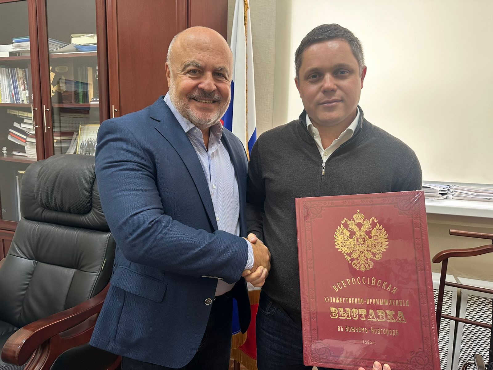 По окончании встречи Павел Солодкий подарил Антону Жеребцову репринтное издание "Всероссийская промышленная и художественная выставка в Нижнем Новгороде 1896 г." Книга, посвященная Выставке, вышла в издательстве Германа Гоппе в 1896 году. Репринт издания стал возможен благодаря активному участию нижегородских предпринимателей. Книгу посвятили 130-летию Выставки, которое будет отмечаться в 2026 году.